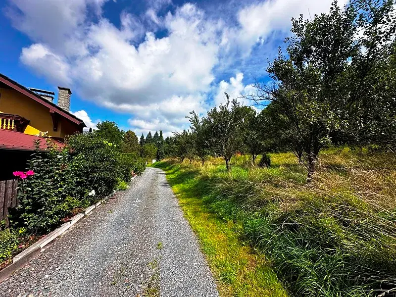 Příjezd k pozemku je po obecní asfaltové komunikaci (autobusová zastávka cca 4 minuty chůze od pozemku).
