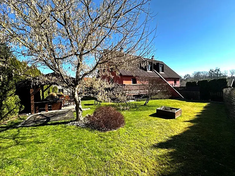 Okolo domu je oplocená zahrada se zastřešeným posezením, ve kterém je zavedená elektřina. Zahrada je prosluněná, rovinatá, osazená okrasnými dřevinami, které zajišťují klid a soukromí.
