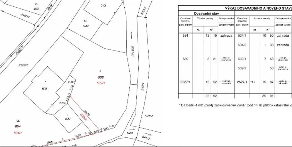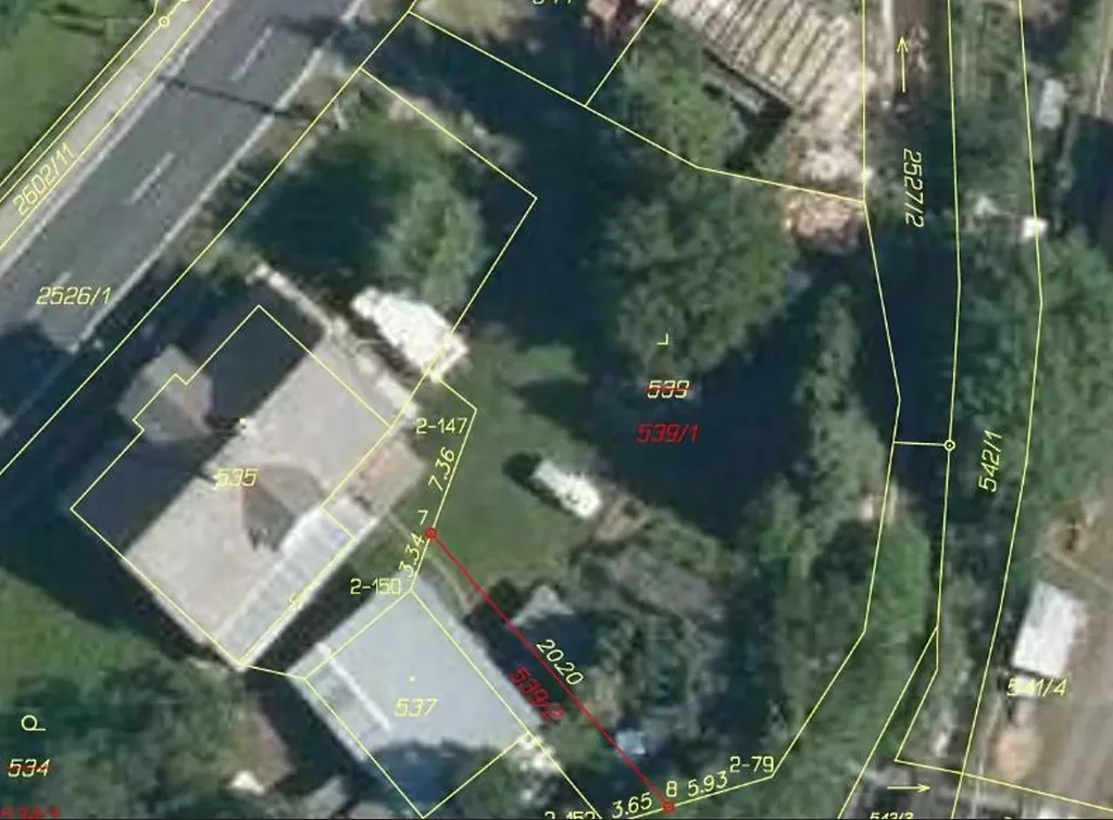 p.č. 539/1 – zastavěná plocha a nádvoří, zbořeniště o výměře o výměře 763 m2, pozemek oddělený dle GP č. 2040-272/2025 z p.č. 539 k.ú. Česká Ves, který je zapsán v katastru nemovitostí u Katastrálního úřadu pro Olomoucký kraj Katastrální pracoviště Jeseník, na LV č. 46 pro k.ú. Česká Ves, obec Česká Ves, okres Jeseník.