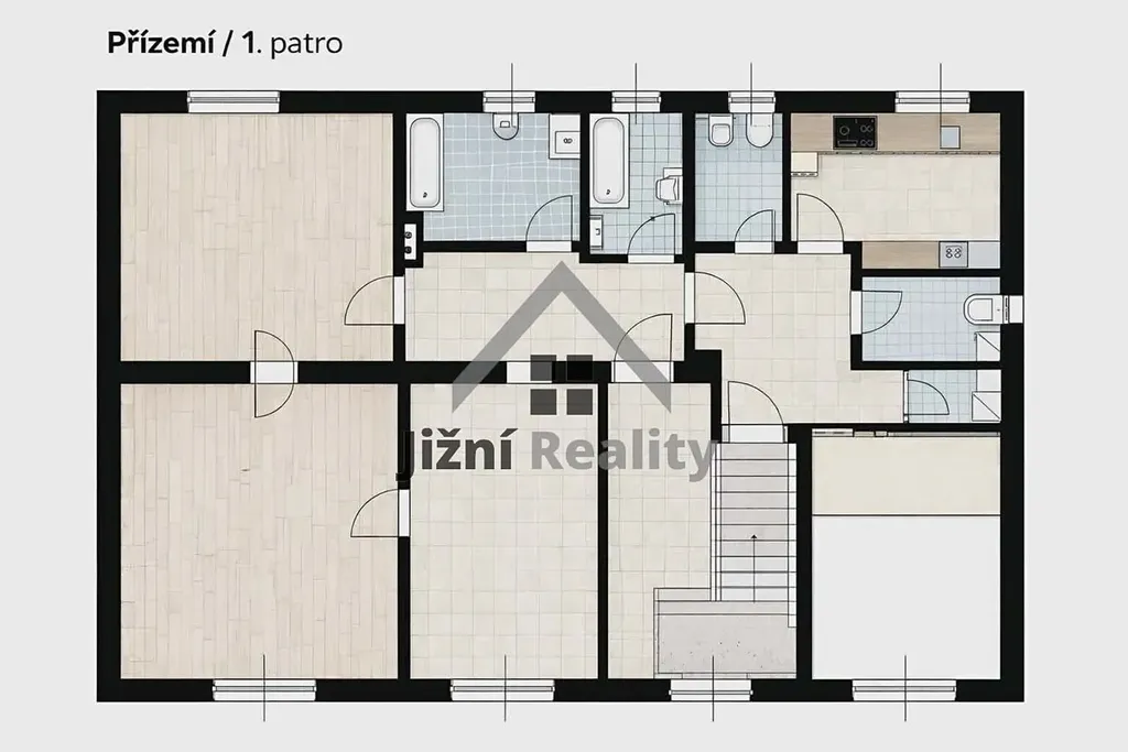 Dům je podsklepený a suchý, je ve výborném stavu a nádherně vybavený. Ve sklepích se dají udělat další volnočasové místnosti. V prvním patře se nachází krásná a prostorná kuchyň, na níž navazuje velký obývací pokoj. Následují další tři menší pokoje a koupelna s WC a samostatné WC.