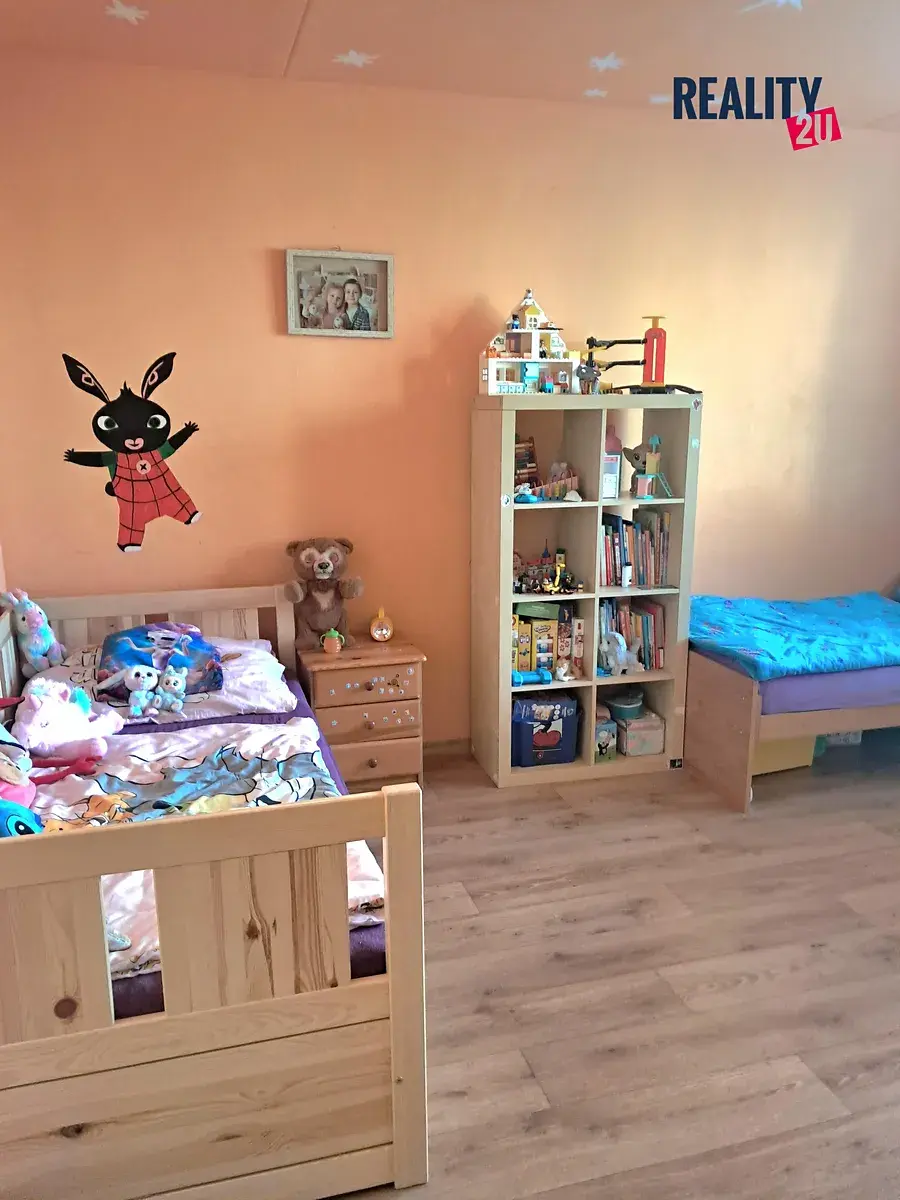 Ve výhradním zastoupení nabízíme prostorný a moderně zrekonstruovaný panelový byt 2+1 v osobním vlastnictví v Hustopečích u Brna, ulice Větrná. Byt se nachází ve zvýšeném 1.NP bez výtahu. Rekonstrukce celého domu proběhla v r. 2019. Byly vyměněny okna za plastová a celý dům byl zateplen, následovala nová fasáda domu. Rekonstrukce bytu proběhla v r. 2018 a výsledkem je upravené dispoziční řešení bytu, kdy byla zachována vstupní hala, ze které se dostaneme do zděné koupelny s vanou a WC, která byla cca o 1,5 m2 zvětšená. Z haly jsou pak také vstupy do kuchyně o výměře 12m2 a jednotlivých pokojů ( ložnice 12,1 m2, dětský pokoj s lodžií 16 m2, ). Celková podlahová plocha bytu je 53,7 m2. Rekonstrukce: nová zděná koupelna a WC, nové dřevěné obložky a dveře do koupelny, vestavěné skříně na míru v hale, podlahy- zátěžová guma v dekoru dřeva, dlažba v koupelně a WC, nová kuchyňská linka, zasklená lodžie. V oknech jsou žaluzie. Rozvod tepla je řešen centrálně, na radiátorech jsou měřiče spotřeby. Vlastní elektroměr 230/380 V. Lokalita nabízí kompletní občanskou vybavenost – v okolí najdete obchody, školy, školky, restaurace i veškeré služby. Výborná dopravní dostupnost umožňuje pohodlné spojení do centra města i do přilehlého okolí , v blízkosti dálnice D1. Energetická třída C Orientace bytu : V-Z. Celkové náklady na bydlení: 4.688,-Kč ( Fond oprav, pojištění, splátka úvěru, správní příspěvek celkem 1.603,-Kč, zálohy na energie -3.085,-Kč ) + elektřina . K bytu patří sklepní kóje 2 m2. Lodžie je po rekonstrukci, prosklená, výměra cca 4 m2- nezapočítává se do podlahové plochy bytu. Parkování : před domem dostatek parkovacích míst;