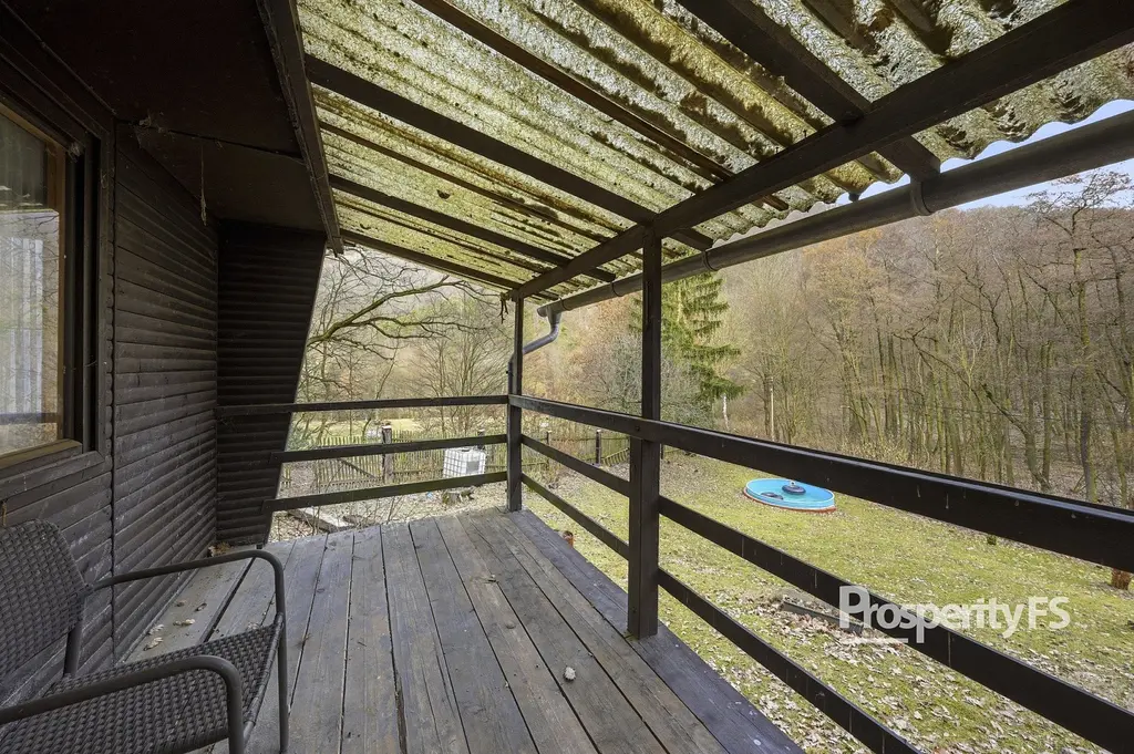 Chata disponuje terasou s příjemným výhledem do okolní přírody. Velkou výhodou je umístění bez přímých sousedů, což zajišťuje dostatek klidu a příjemné zázemí pro odpočinek i rekreaci. Do chaty je zde zavedena elektřina s vlastním elektroměrem. Vodovodní řad se nachází na hranici pozemku a k dispozici je také projekt včetně povolení k vybudování vodovodní přípojky. Parkování je možné přímo na pozemku a příjezd je zajištěn po zpevněné štěrkové cestě. Nemovitost tak nabízí skvělou příležitost vytvořit si vlastní ráj uprostřed přírody.