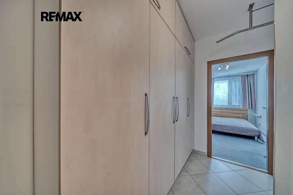 V chodbě jsou praktické vestavěné skříně, které poskytují dostatek úložného prostoru.