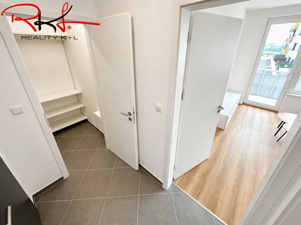 Byt se skládá z vstupní chodby, odkud je vstup do obývacího pokoje spojeného s kuchyňským koutem, který nabízí přímý vstup na balkón s výhledem na jih a vstup do ložnice. Koupelna se sprchovým koutem a toaletou.