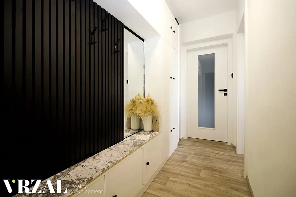 Tento byt o velikosti 76 m² prošel nákladnou rekonstrukcí v letech 2024-2025, při níž byly použity kvalitní materiály a moderní interiérové prvky.
