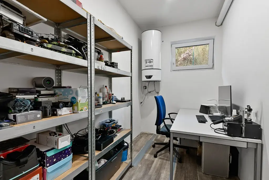 Dominantou nemovitosti je velkorysý obývací pokoj s kuchyňským koutem o velikosti přibližně 40 m², který tvoří přirozené centrum celého domu a poskytuje dostatek místa pro každodenní rodinný život i setkávání s přáteli.