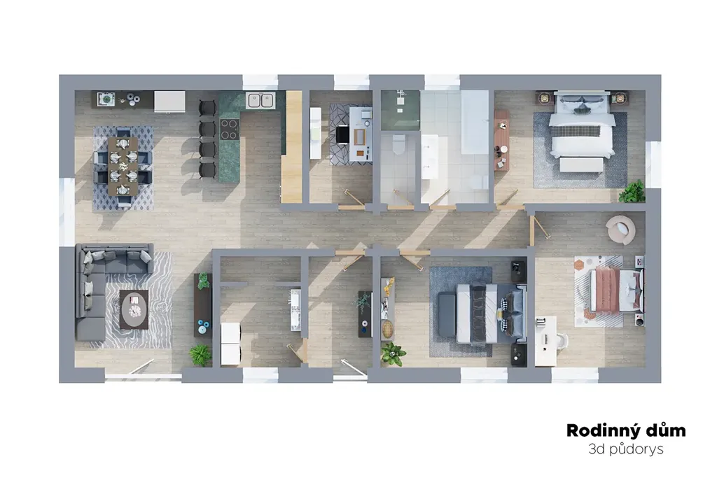 Tento dům spojuje vše, co dnešní rodina hledá – moderní komfort s prakticky řešeným interiérem, důraz na energetickou úspornost, a hlavně kvalitní rodinné bydlení.
