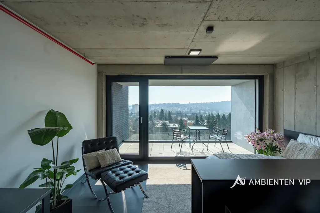 Ubytovací jednotky nabízí promyšlené dispoziční řešení s důrazem na efektivní využití prostoru. Interiér tvoří obytná část s kuchyňským koutem, klidová zóna na spaní a moderní koupelna se sprchovým koutem. Vybrané jednotky disponují lodžií, jiné zaujmou otevřenými výhledy do okolí dle umístění v domě.