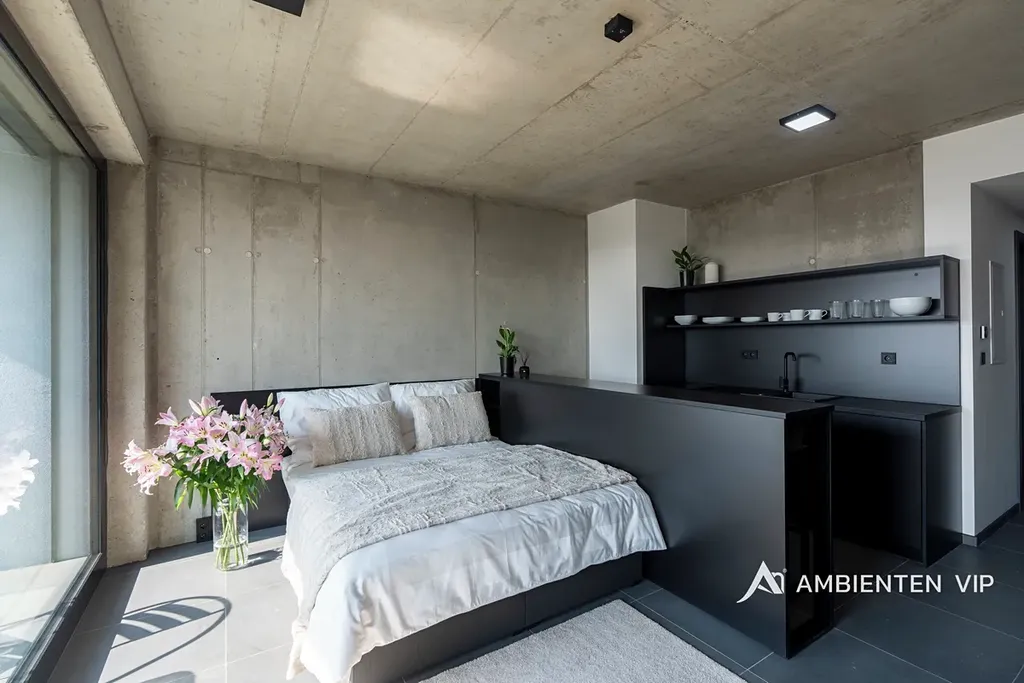 Standardem každé jednotky je plné vybavení zahrnující - postel o rozměru 160 × 200 cm a vestavěné úložné prvky, pracovní kout a barový pult, klimatizaci a venkovní žaluzie, systém chytré domácnosti Loxone, plně vybavenou kuchyň včetně myčky a nádobí. Celkový koncept vytváří harmonické a funkční prostředí ideální pro moderní městský život.