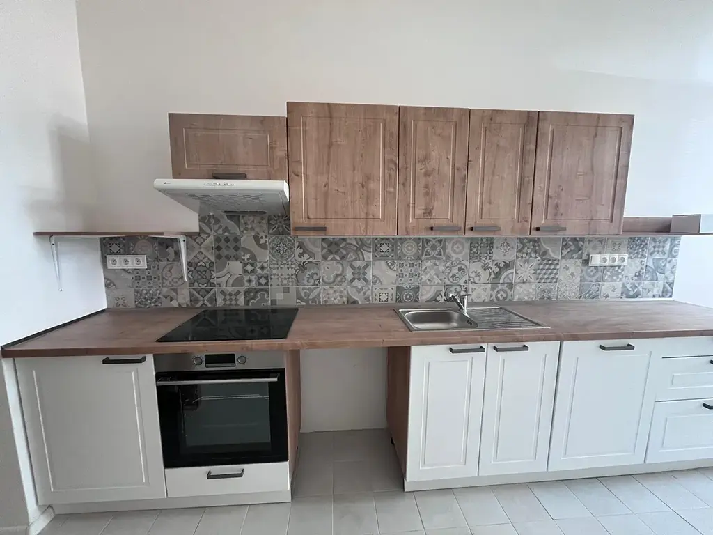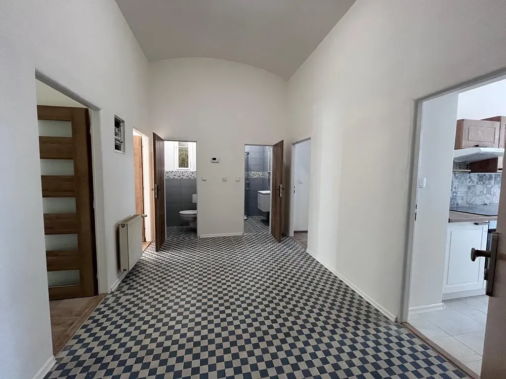Dispozice bytu – prostorná předsíň, 3xložnice (samostatné vstupy), samostatná kuchyně s vybavenou kuchyňskou linkou, koupelna se sprchovým koutem, samostatné WC. Kuchyňská linka je vybavena sklokeramickou varnou deskou, elektrickou troubou, digestoří, myčkou nádobí a je zde místo pro pračku. Byt je nezařízený. Vytápění a ohřev vody plynovým kotlem. Kuchyně a jeden pokoj jsou situovány do ulice, zbylé dva pokoje jsou situovány do vnitrobloku.
