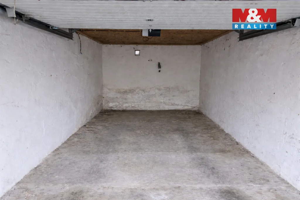 Garáž disponuje moderními sekčními vraty, která zajišťují pohodlný vjezd i vyšší bezpečnost. Ideální nejen pro parkování, ale i jako praktický sklad. Skvělá dostupnost a klidné okolí.