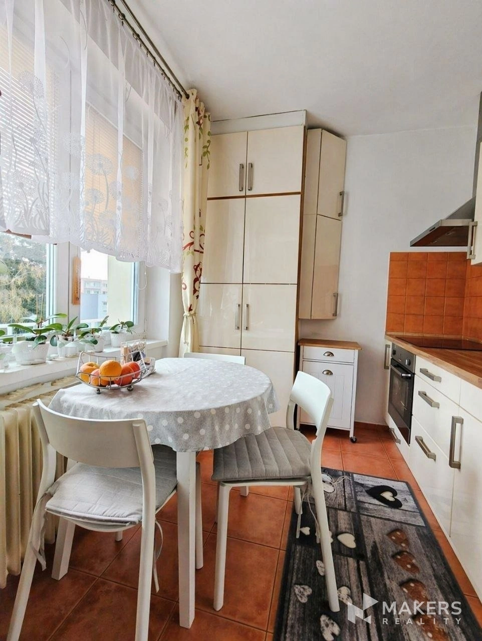 Dispozice bytu je praktická a funkční – menší pokoj s balkonem a kuchyně s jídelním koutem jsou orientovány na východ, větší pokoj na západ do zeleně, což zajišťuje dostatek světla po celý den a příjemnou atmosféru. Koupelna je zděná s vanou, toaleta je oddělená a vybavená umývátkem a bidetovou sprškou. Byt dále nabízí kvalitní zařizovací prvky (Hansgrohe, Laufen) a bezpečnostní vstupní dveře třídy 3.