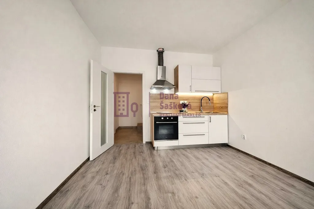 Dispozice 1+kk nabízí vstupní chodbu, koupelnu s vanou a toaletou a pokoj s kuchyňským koutem. Byt orientovaný na severozápad je vybavený kuchyňskou linkou s vestavěnou elektrickou troubou, varnou deskou a digestoří.