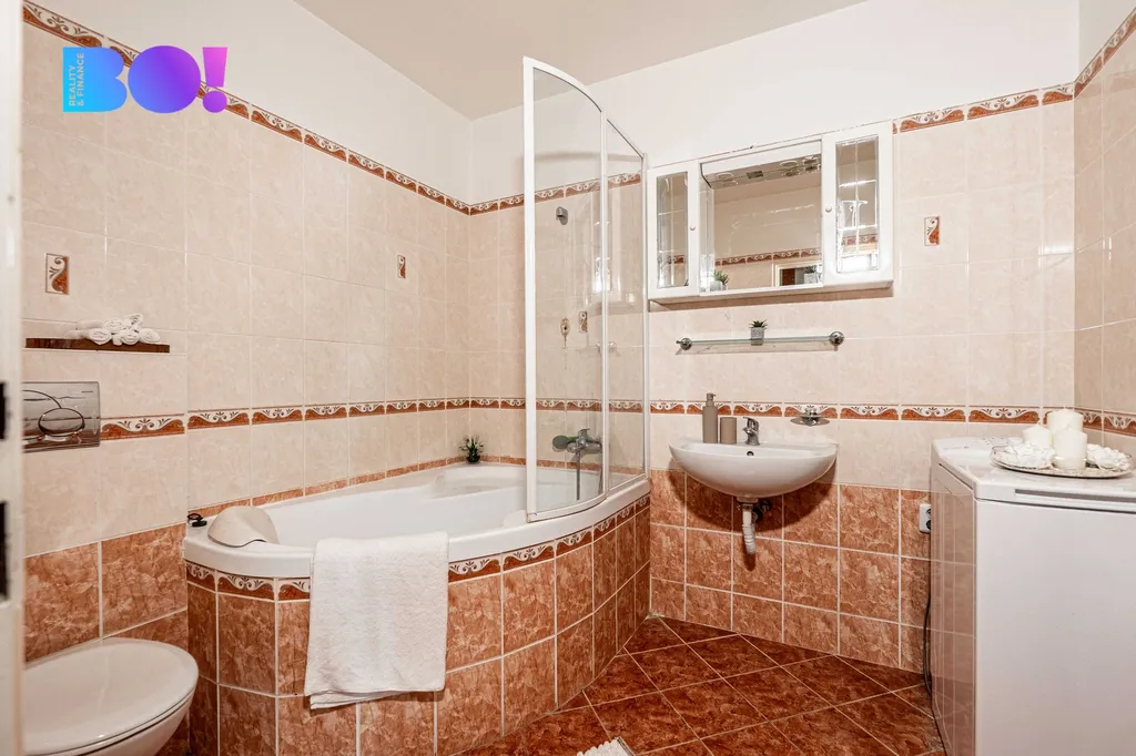 Byt se nachází ve 2 nadzemním patře bytového domu, který je ve velmi dobrém stavu. S celkovou plochou 123 m² nabízí prostor pro každého člena i větší rodiny. Dalším komfortním prvkem jsou dvě koupelny a oddělená kuchyň s jídelním koutem. Součástí nabídky jsou také dvě garážová stání, což zajistí pohodlné parkování pro rodinné vozy, a sklepní kóje o ploše 4 m² pro uskladnění sezónních věcí nebo sportovního vybavení.
