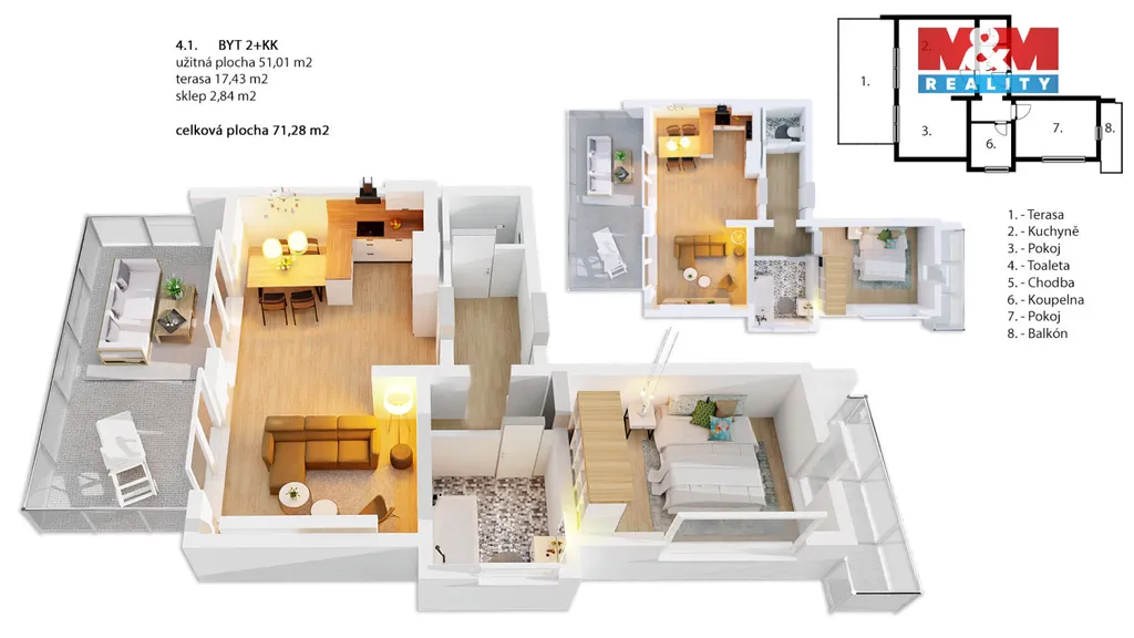BYT 2+KK S TERASOU! Byty MB Husova se nachází v centru města, jen pár kroků od parku Výstaviště. Tento byt má celkovou plochu 71,28 m2, nabízí vlastní soukromou terasu o velikosti 17,43 m2, která nabízí dostatek prostoru pro posezení, grilování i odpočinek. Dům je postaven z nadstandardních materiálů a výhodou je pouze jeden soused na patře. Byt vyniká i svou energetickou nezávislostí - je vybaven vlastním plynovým kotlem, díky kterému máte plnou kontrolu nad spotřebou i náklady. Celý dům splňuje energetickou třídu A, což zajišťuje nízké provozní výdaje a maximální úspornost. K bytu náleží i sklep a pro maximální pohodlí je možné dokoupit kryté gážové stání přímo v objektu za cenu 650.000,-Kč. S financováním Vám pomůže naše hypoteční specialistka – nyní stačí 12 % z kupní ceny, zbytek až po kolaudaci. Moderní a úsporné bydlení - to je příležitost, která čeká právě na vás!