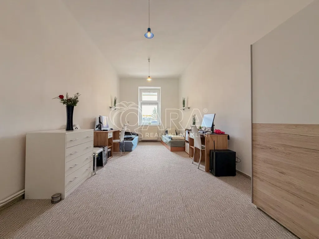 Bytová jednotka se nachází v 2. patře bytového domu bez výtahu, kdy prošla částečnou rekonstrukcí a nabízí velmi vzdušný a čistý prostor. Veškerý nábytek zobrazený na fotografiích je součástí pronájmu. V rámci nájmu má každý možnost využívat i společné prostory, jako jsou vstupní chodba, kuchyně, koupelna se sprchovým koutem a samostatné WC. Tyto společné prostory jsou nájemci povinni společně řádně udržovat.