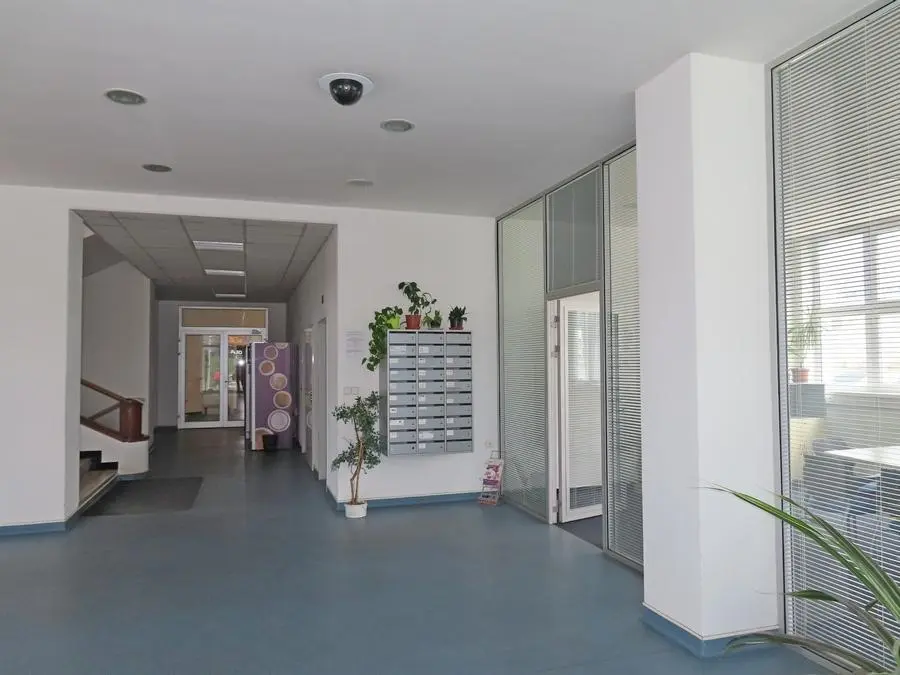 Kancelář se nachází v administrativní budově s recepcí s ostrahou a přístupem 24 hod. denně. Situována je ve 2.patře, v budově je výtah. Na podlaze je položen koberec, sociální zázemí je pro nájemníky k dispozici na patře (kuchyňka, pánské a dámské WC). V budově je k dispozici vysokorychlostní internet.