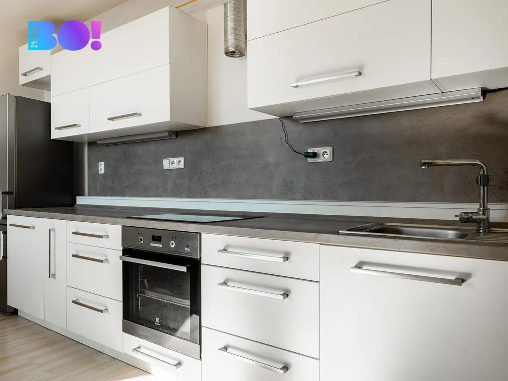 Součástí bytu je kuchyně s vestavěnými spotřebiči.