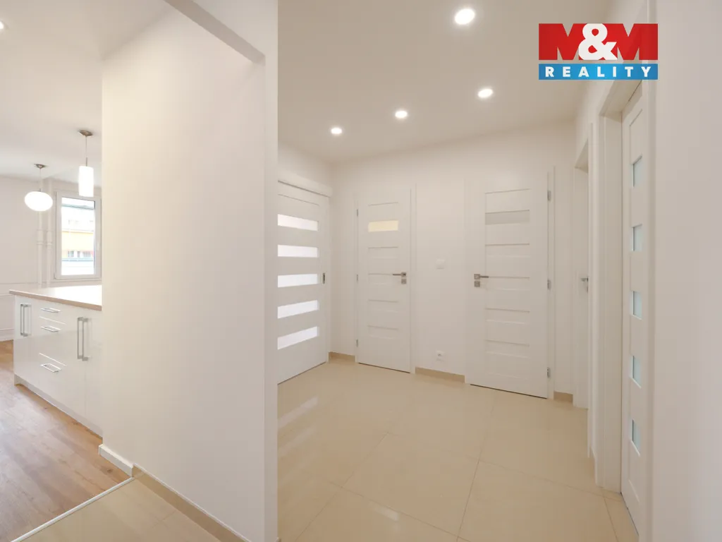 Nabízíme moderní nadčasově zrekonstruovaný byt 3+kk o celkové užitné ploše 77m² včetně prostorné zasklené lodžie 10m² a sklepa 2m, v revitalizovaném panelovém domě. Dům disponuje kamerovým systémem a vstupy jsou na čip. Při rekonstrukci byly použity špičkové materiály velkoformátové obklady a dlažby MARAZZI v imitaci mramoru v koupelně a WC. Nad vanou je vytvořena nika s led osvětlením. Na chodbě dlažba PALAZZO. Moderní kuchyň je zhotovena na zakázku bílá lesk s ostrůvkem a spotřebiči ELEKTROLUX- myčka, trouba, m. trouba, lednice s mrazákem, indukční varná deska a digestoř. V pokojích je kvalitní vinylová podlaha PARADOR. Okna jsou s trojskly. Stropy a stěny mají sádrové stěrky. Dveře jsou bílé částečně prosklené. Vchodové protipožární a bezpečnostní. Radiátory topení jsou nové. Nová elektroinstalace je v celém bytě i s led světly. V obývacím pokoji je nainstalován designový akustický panel na stěně pro TV. V bytě byla provedena špičková řemeslná práce. Byt s parametry novostavby.