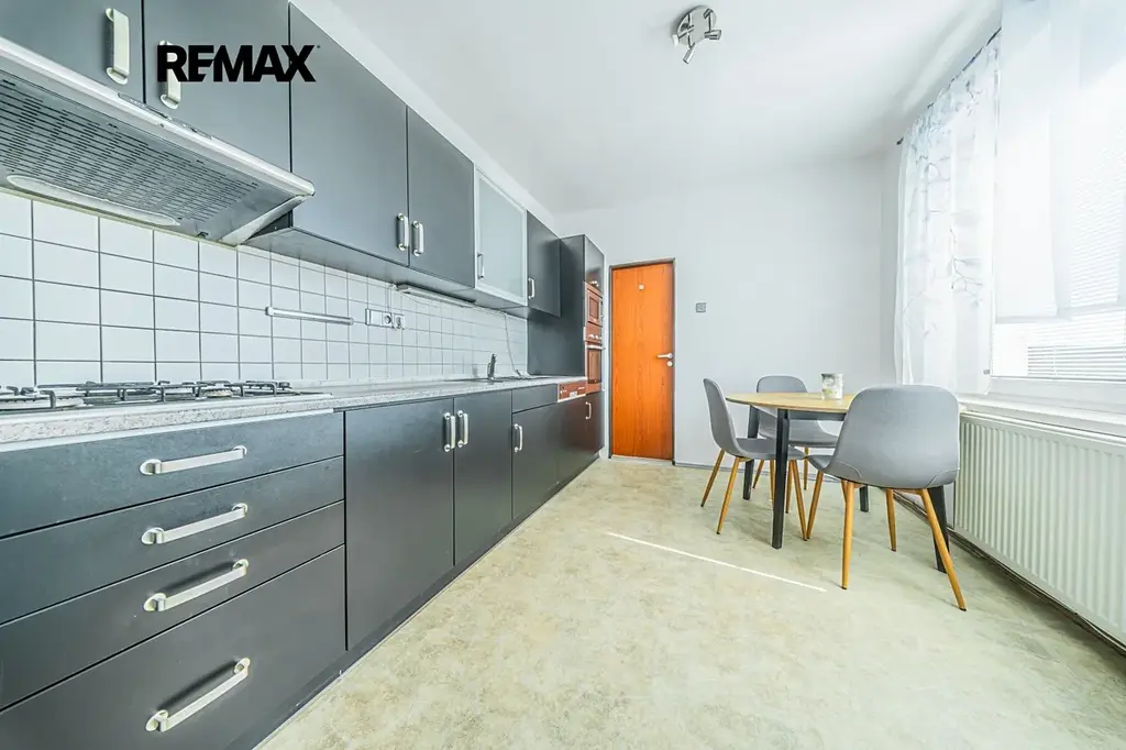Byt se nachází ve 3. patře cihlového domu, prošel rekonstrukcí a je ve velmi dobrém stavu. K bytu patří také dva sklepy s celkovou výměrou 16 m2.