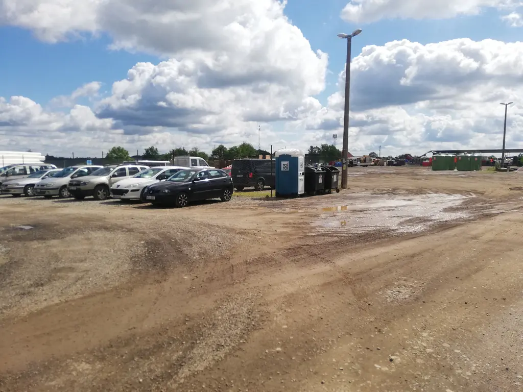 Povrchy: Kompletně rovinatý terén, zpevněno zhutnělou štěrkovou drtí, vnitřní komunikace asfaltové.