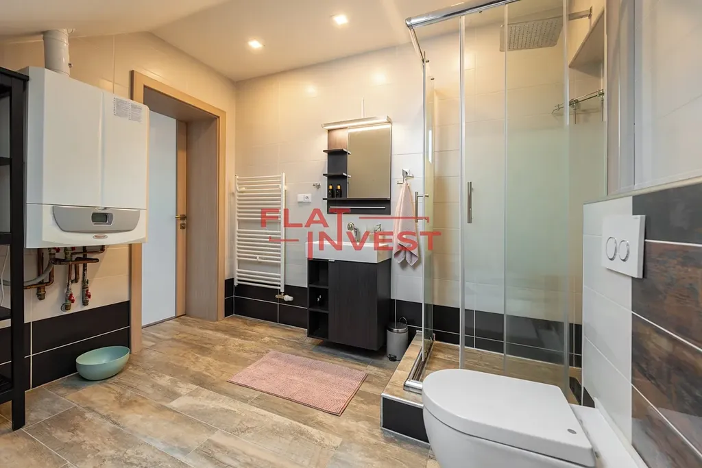V přízemí se dále nachází koupelna se sprchou a toaletou a praktická komora.