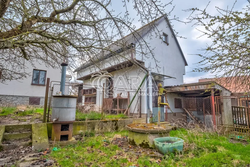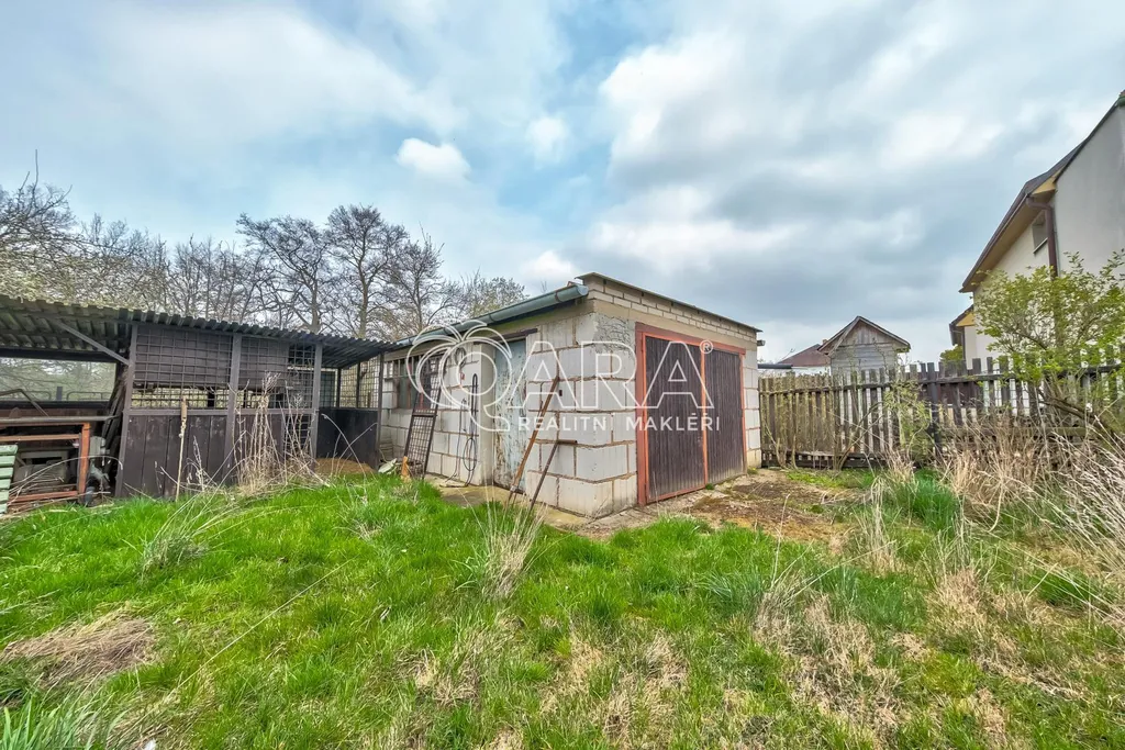 Na zahradě se nachází dřevěná zastřešená pergola, zděná přístavba s udírnou, skladem, králíkárnou a sklípkem na ovoce, a dále zděný sklad.
