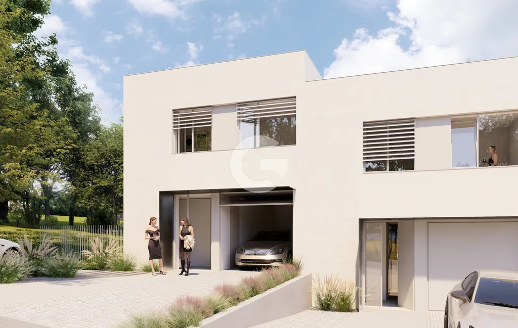 Každý dům disponuje garáží a dvěma parkovacími místy před domem — celkem 3 místa pro vozidla.