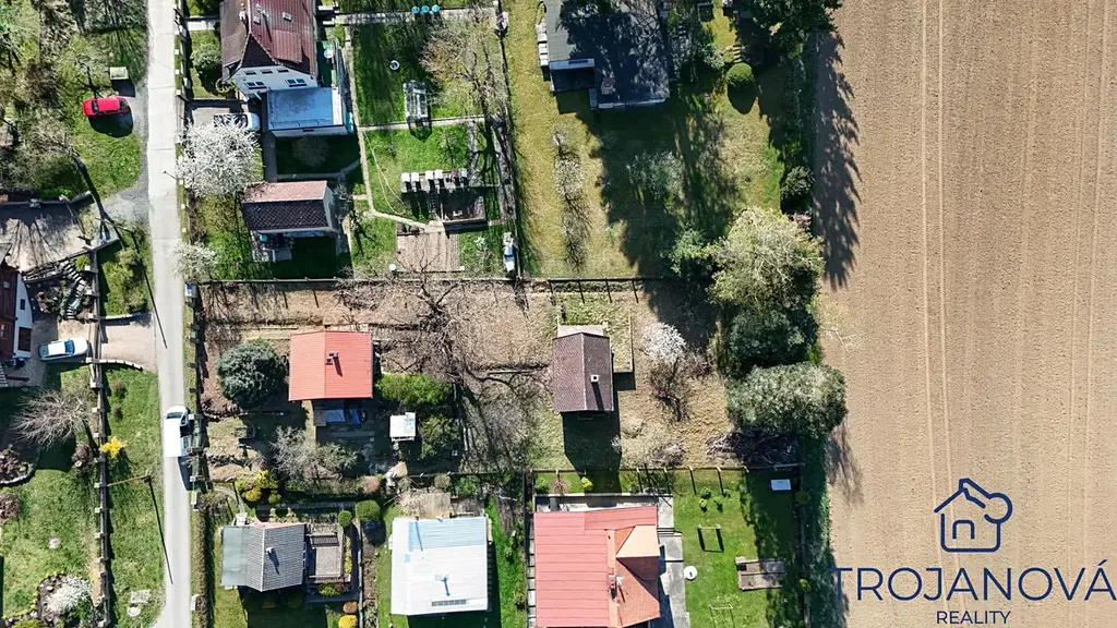 Zahrada o rozloze 714 m2 se vzrostlými stromy je oázou klidu. Je mírně svažitá a nabízí ideální kombinaci slunných ploch i příjemného stínu.
