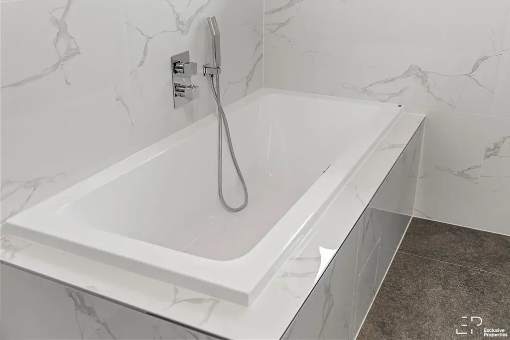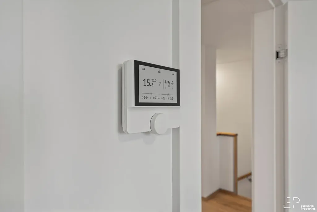 Ohřev teplé vody zajišťuje centrální tepelné čerpadlo pro celý objekt. Dům je dále vybaven fotovoltaickým systémem s bateriovým úložištěm.