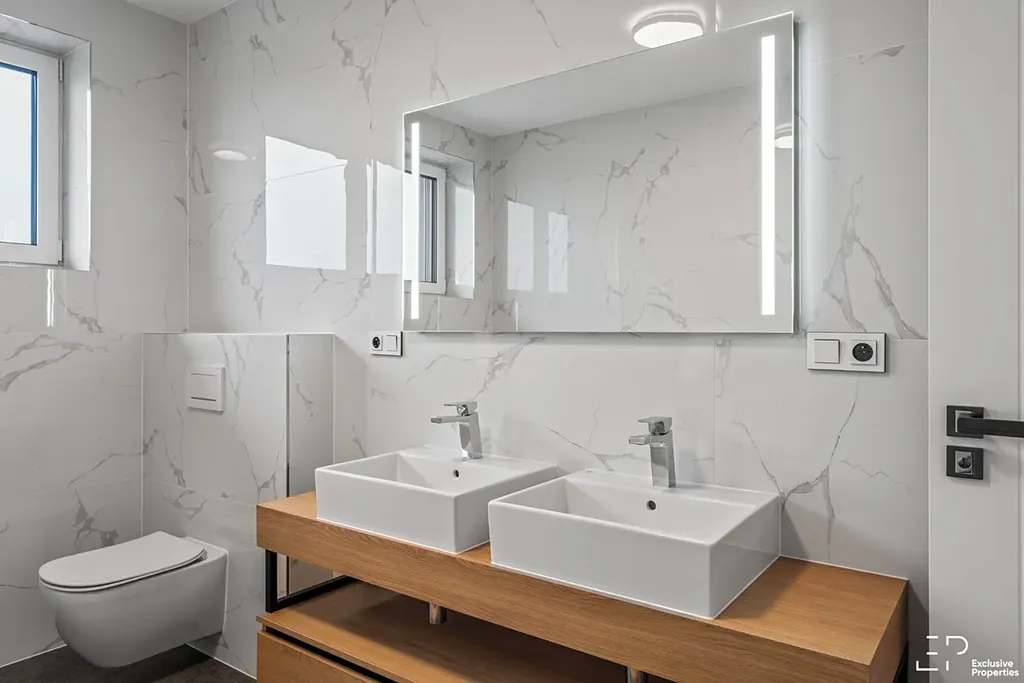 • kompletní osvětlení, koupelnový nábytek a zrcadla