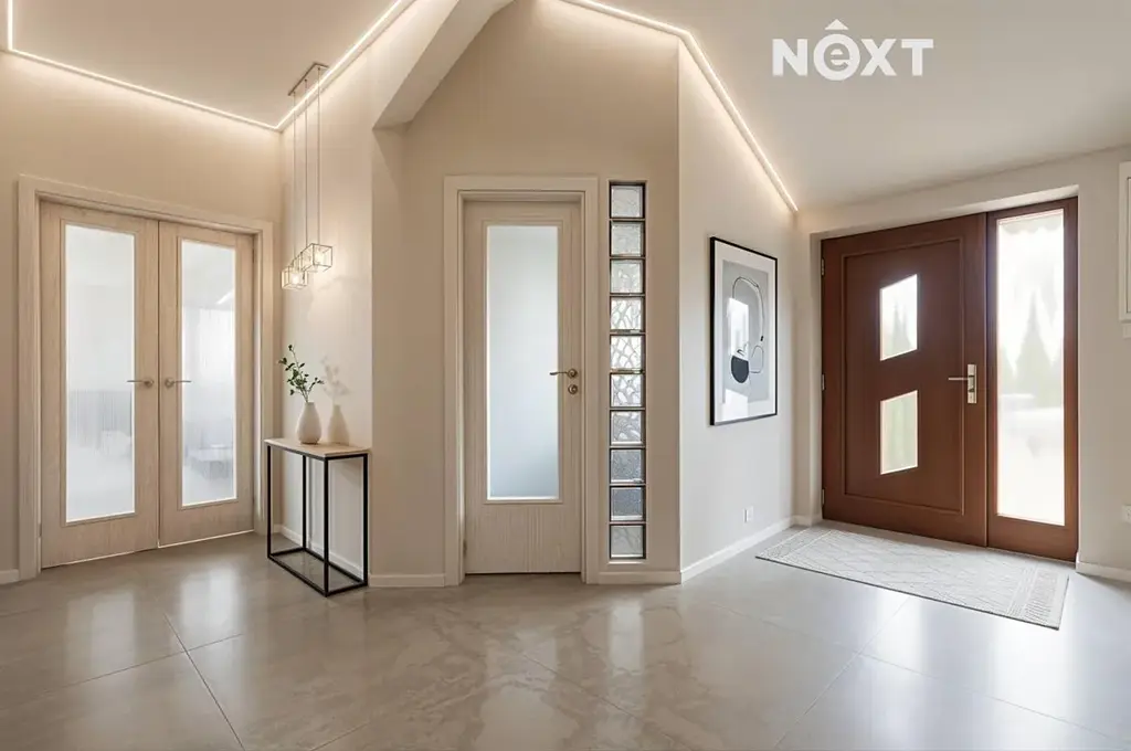 Dům je řešen jako přízemní s důrazem na praktičnost a pohodlí každodenního života. Dispozice 4+kk nabízí přehledné a funkční uspořádání – obývací pokoj s kuchyňským koutem tvoří přirozené srdce domu, odkud je přímý kontakt se zahradou. Velkoformátová okna zajišťují dostatek denního světla po celý den a podtrhují příjemnou, vzdušnou atmosféru interiéru. Dům působí velmi útulně a zároveň moderně, s důrazem na efektivní využití prostoru.