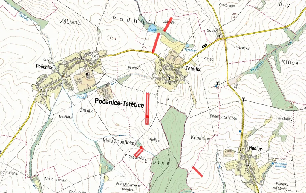 V katastrálních územích Tetětice a Medlov u Zborovic, okres Kroměříž, nabízíme k prodeji soubor pozemků ve výlučném vlastnictví o celkové výměře 34 319 m².