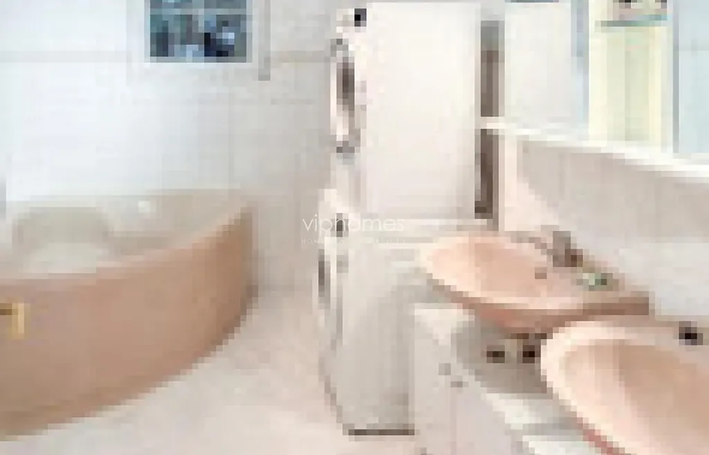 Dům má v přízemí prostorný obývací pokoj s krbem a přímým vstupem na zahradu, plně vybavenou kuchyň, jídelní část, ložnici, koupelnu s vanou a sprchovým koutem, samostatnou toaletu a vnitřní bazén. V patře je k dispozici pět ložnic, koupelna s rohovou vanou, samostatná toaleta a balkon. Kuchyňská linka vybavena všemi potřebnými spotřebiči. Garáž se dvěma parkovacími místy. Bezpečnostní rolety, garážová vrata na dálkové ovládání, vnitřní vyhřívaný bazén, zabezpečovací systém s možností připojení na bezpečnostní agenturu, SAT / TV, pračka, sušička, plovoucí a vinylové podlahy. Elektrické vytápění. Dům je kompletně podsklepen, technické a skladovací prostory.