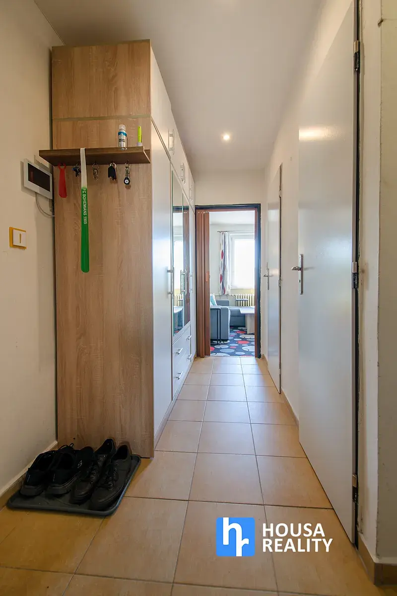 Dispozice bytu je prakticky řešena. Vstupní chodba nabízí dostatek prostoru pro instalaci vestavěných skříní. Samostatné WC je oddělené od koupelny, která je vybavena sprchovým koutem a místem pro pračku.