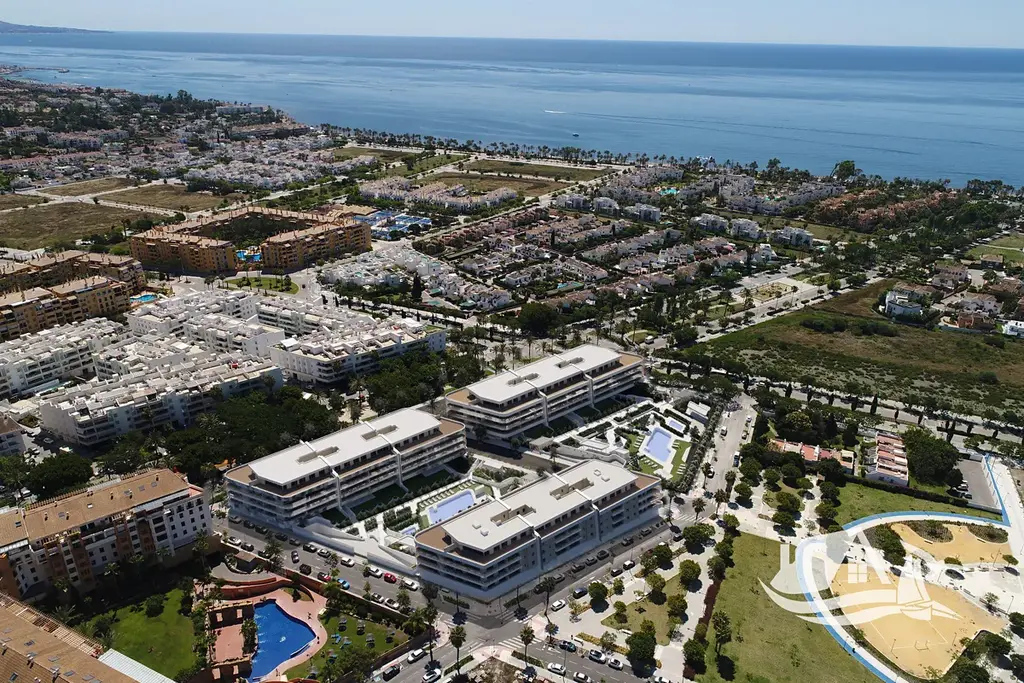 Rezidenční komplex nabízí upravené zahrady, bazén, chill-out zóny a bezpečné prostředí, které působí jako soukromá oáza. Pláž je vzdálená přibližně jeden kilometr, golfová hřiště i kompletní občanská vybavenost jsou na dosah a letiště v Malaze přibližně 40 kilometrů, což zajišťuje pohodlnou dostupnost během celého roku.