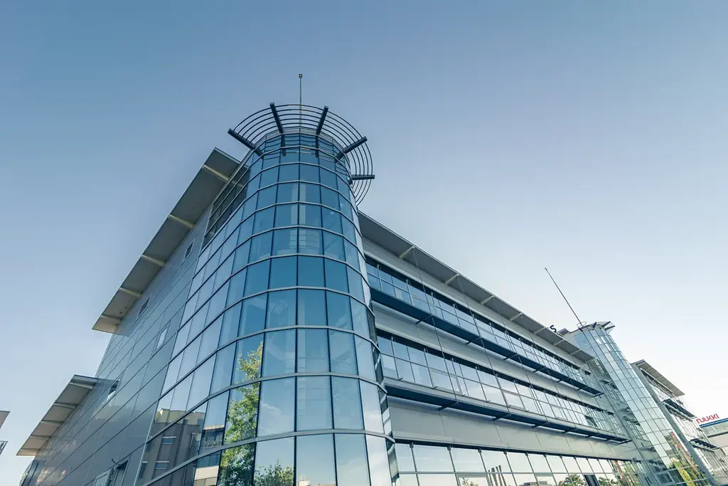 Budova nabízí moderní a příjemné pracovní prostředí, dostatek parkovacích míst a zároveň přímé napojení na dálnici D5 směrem na Plzeň.