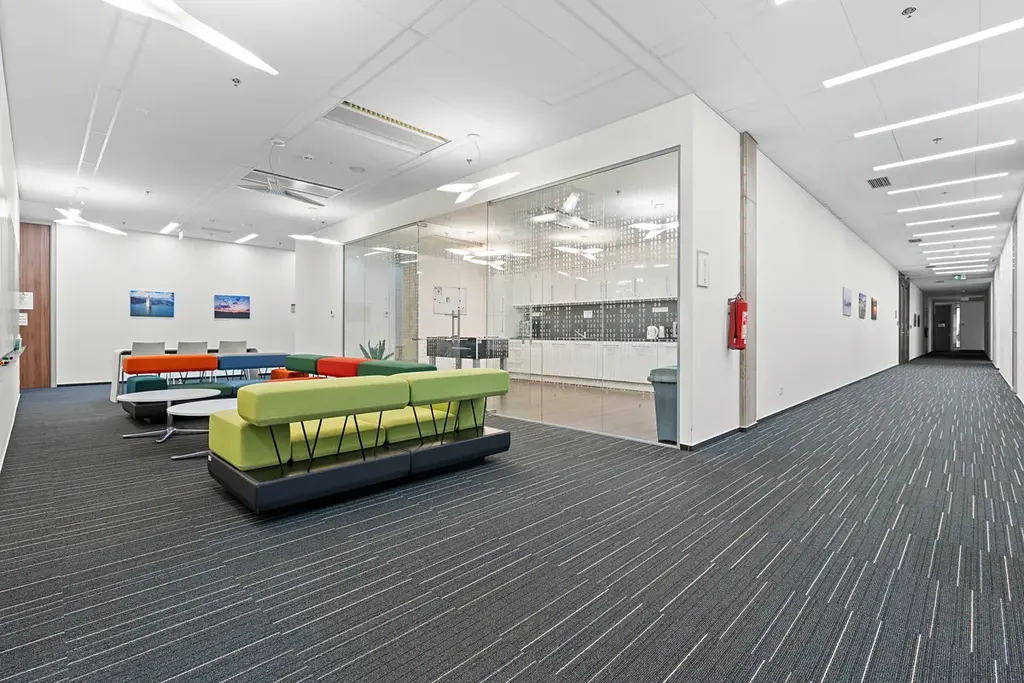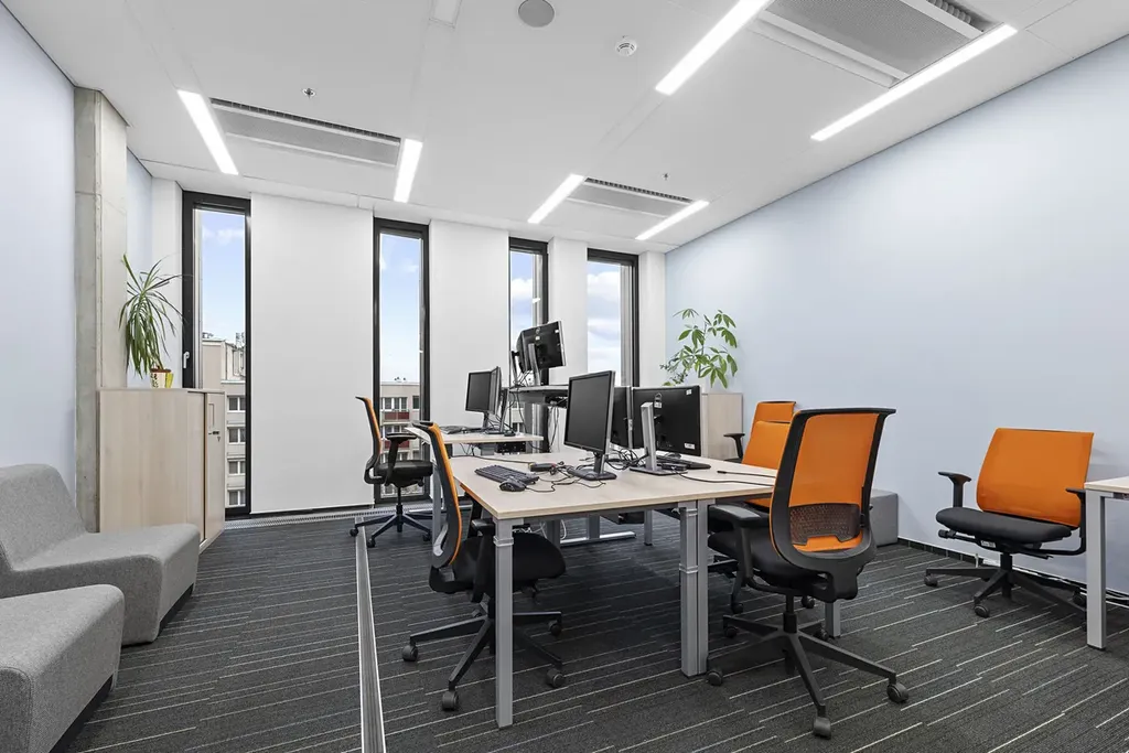 Dominantní osmipatrová budova nabízí moderní a efektivní kancelářské prostory splňující nejvyšší mezinárodní standardy kvality a udržitelnosti s certifikací BREEAM – OUTSTANDING, což zajišťuje nízké provozní náklady a vysoký komfort pro nájemce.