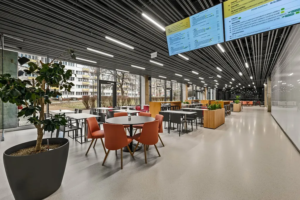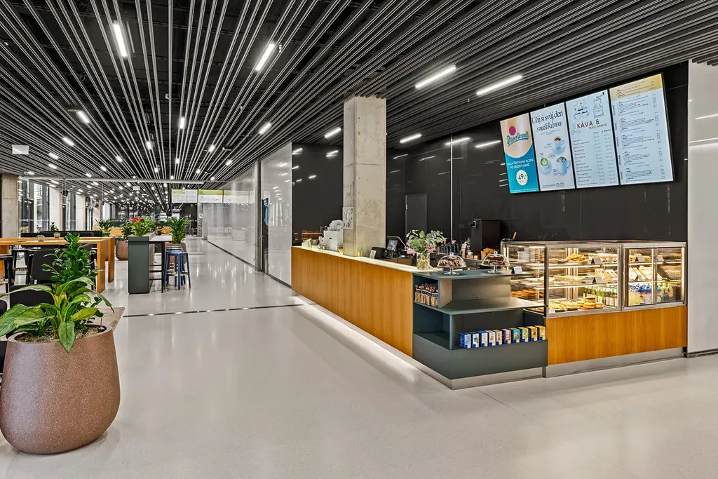 V přízemí budovy se nachází retailové prostory se zavedenými nájemci, jako je supermarket Billa, SONNENTOR či drogerie Rossmann, dále kantýna a kavárna VERA Kitchen, které poskytují kvalitní zázemí nejen zaměstnancům budovy, ale i široké veřejnosti.
