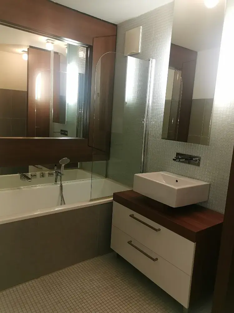 Nabízíme k pronájmu mezonetový, vemi zajímavě architektonicky řešený byt v luxusním Karlínském projektu. V přízemí bytu nalezneme obývací pokoj, vybavenou kuchyni s terasou krytou posuvnými panely, toaletou a komorou, v patře ložnici s vestavěnými skříněmi a koupelnu s vanou a toaletou. K bytu náleží garážové parkovací stání v domě. V blízkém okolí stanice metra, veškerá občanská vybavenost, spousta restaurací, barů a společenského vyžití.