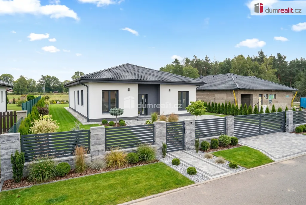 v exkluzivním zastoupení prodej moderní, zděné novostavby rodinného domu o dispozici 5+kk, situované v klidné a vyhledávané lokalitě obce Hrobice, pouhých 12 minut od Pardubice a 13 minut od Hradec Králové. Jedná se o přízemní bungalov o podlahové ploše 170 m² na pozemku o velikosti 732 m², který nabízí ideální kombinaci komfortu, soukromí a moderních technologií pro rodinné bydlení.