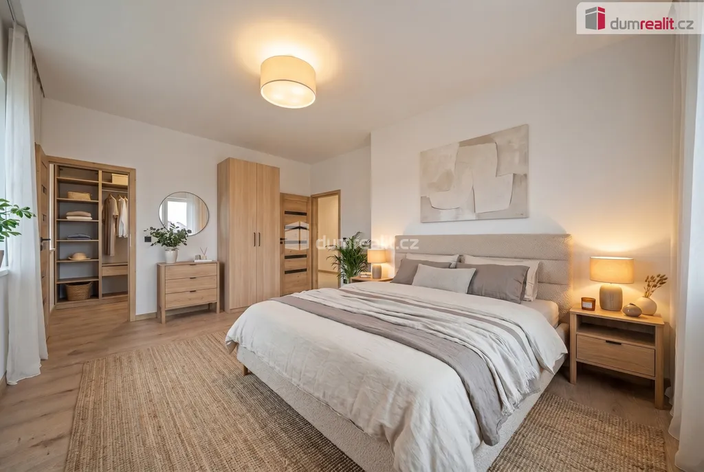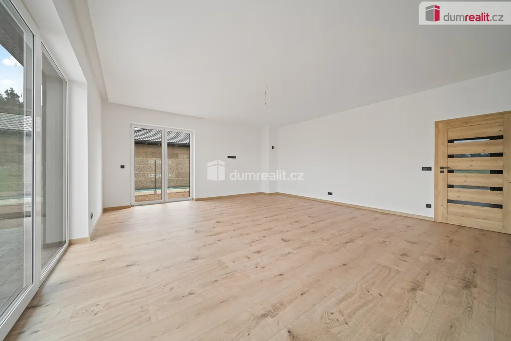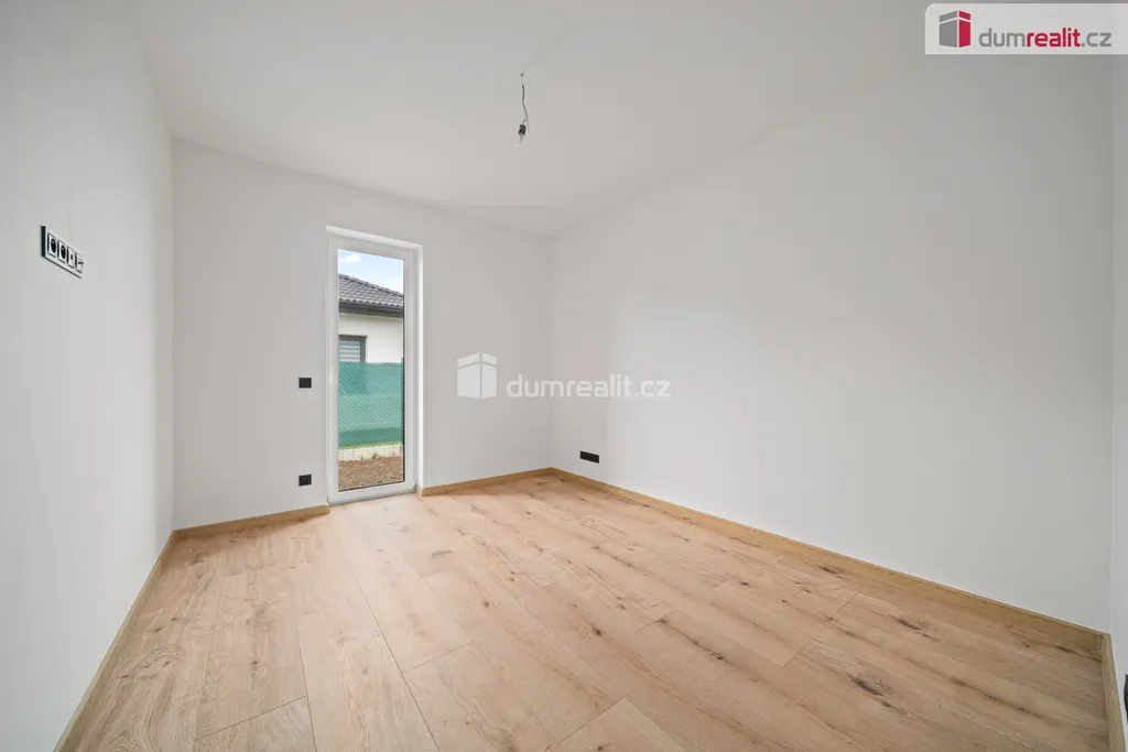 Dispozičně je dům řešen jako prostorný bungalov s dominantním obytným prostorem a kuchyňským koutem, který tvoří hlavní centrum domu. Dále jsou k dispozici samostatné pokoje, koupelna a technické zázemí. Nemovitost je připravena k dokončení interiéru dle individuálních představ nového majitele, což umožňuje přizpůsobení finální podoby bydlení přesně podle vlastního vkusu a potřeb.