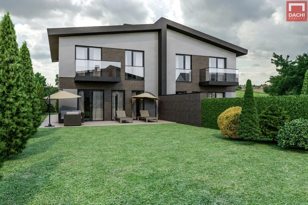 Součástí jednotky je vlastní pozemek o výměře 361 m se zahradou, která poskytuje dostatečný prostor pro relaxaci, rodinné aktivity i případné úpravy dle vašich představ. Dispoziční řešení je navrženo s důrazem na praktičnost. V přízemí se nachází otevřený obývací pokoj s kuchyňským koutem a přímým vstupem na terasu a zahradu, dále předsíň, šatna a samostatné WC. V patře je umístěna klidová zóna se třemi samostatnými pokoji, koupelnou a balkonem. Jednotka má vlastní vstup a samozřejmostí jsou parkovací stání přímo u domu.
