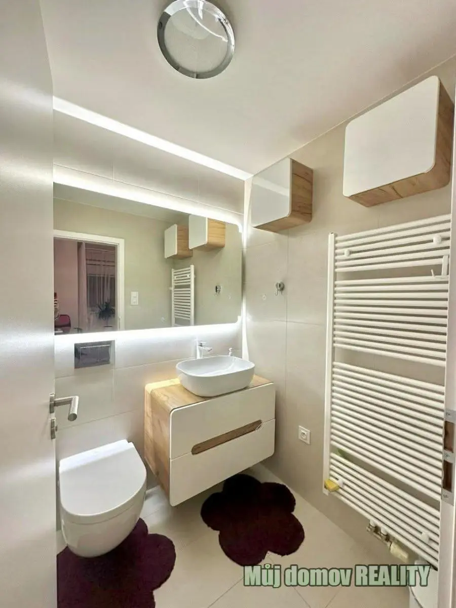 Součástí pronájmu je také parkovací stání v podzemní garáži.