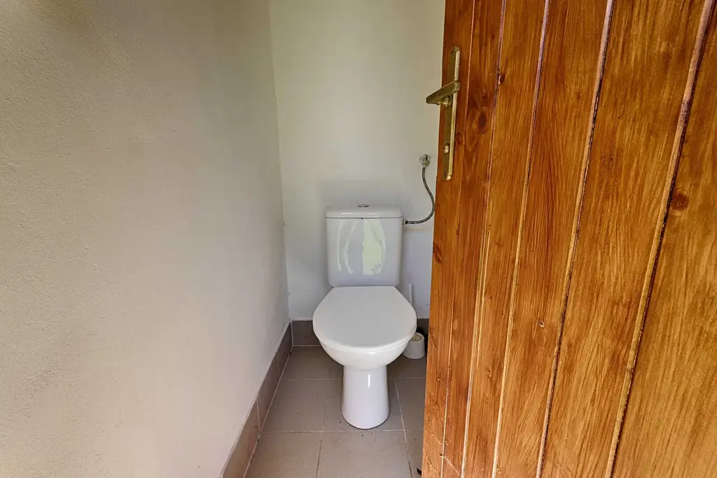 Obytná část je řešena centrální vstupní halou, která slouží také jako jídelna a umožňuje vstup do všech místností. Z haly se vstupuje do prostorného obývacího pokoje s krbem, dále do plně vybavené kuchyně (myčka nádobí, vestavná lednice a mikrovlnná trouba), ložnice, koupelny a samostatného WC. Z haly je rovněž přímý vstup na terasu orientovanou do zahrady.