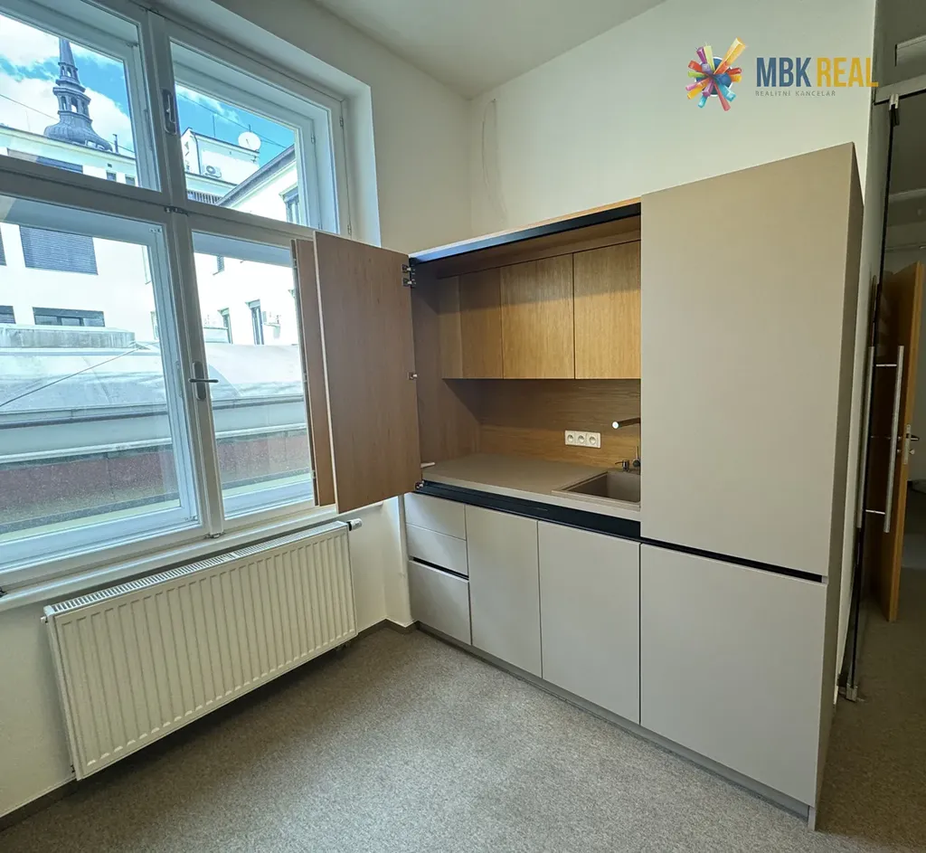 Nabízíme pronájem reprezentativních kanceláří v 2. patře o vel. 71 m2 v centru města Brna situované na náměstí a do klidného vnitro-bloku. Jedná se o samostatný celek 3 kanceláří (31, 17 a 17 m2), součástí je kuchyňský kout na míru, koupelna a samostatné WC. Kanceláře jsou vybaveny klimatizací, v rámci prostor je instalovaná strukturovaná kabeláž svedená do serverovny s možností zřízení samostatné počítačové sítě. Pro bližší informace a osobní prohlídku nás neváhejte kontaktovat!