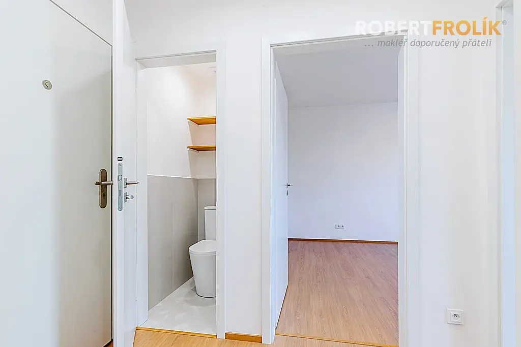V bytě je využitý každý kousek plochy. Kuchyňský kout v sobě skrývá vestavěné spotřebiče (indukční varná deska, elektrická trouba, digestoř, myčka, lednice s mrazákem). Před kuchyní je místo na malý gauč a TV, u francouzského okna na jídelní stolek, případně i s osvětlením nad ním. V ložnici je šatní skříň ve zdi. Další velké skříně jsou v chodbě. V jedné z nich se skrývá i elektrický bojler na ohřev teplé vody. Topení je v domě centrální, z plynové kotelny v suterénu. Radiátory budete mít i v chodbě a koupelně. Koupelna má okno do velkého světlíku, takže byt se dá krásně větrat. Prádlo si usušíte v sušičce. Vstupní dveře do bytu jsou bezpečnostní, okna plastová s dvojskly a žaluziemi. V suterénu domu budete mít i sklípek a vedle domu pěkné společné posezení.