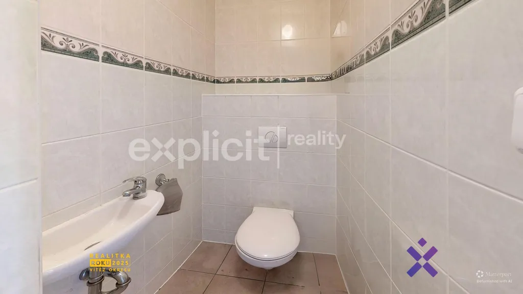 Rodinný dům o užitné ploše 162 m² je dispozičně řešen jako 5+kk. Vstup do domu vede přes prostornou halu s chodbou, odkud se vstupuje do hlavní obytné části – kuchyně s jídelním koutem, obývacího pokoje, ložnice a dvou dalších pokojů. Dále jsou k dispozici dvě koupelny, samostatné WC, komora, sklad a vstup do podkroví. Podkroví nabízí rozsáhlý půdní prostor vhodný k vybudování další obytné části nebo jako praktické úložné zázemí.