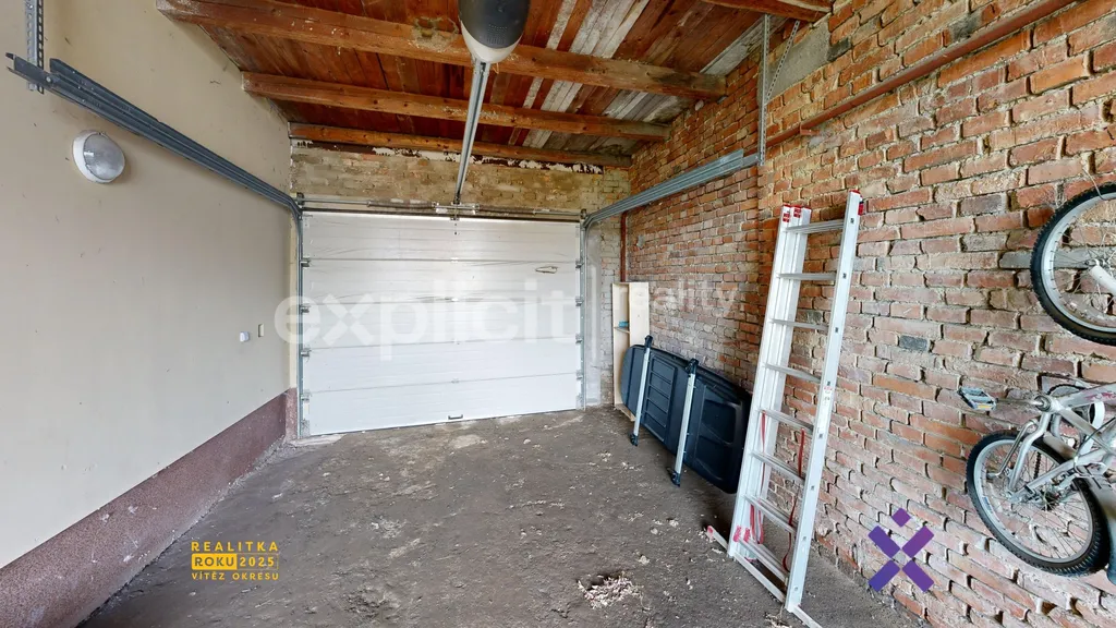 Součástí nemovitosti je dvojgaráž se sekčními vraty, přístupná přímo z ulice a propojená s nádvořím. Na pozemku se dále nachází zděná dílna a hospodářské přístavky vhodné jako skladovací prostory.