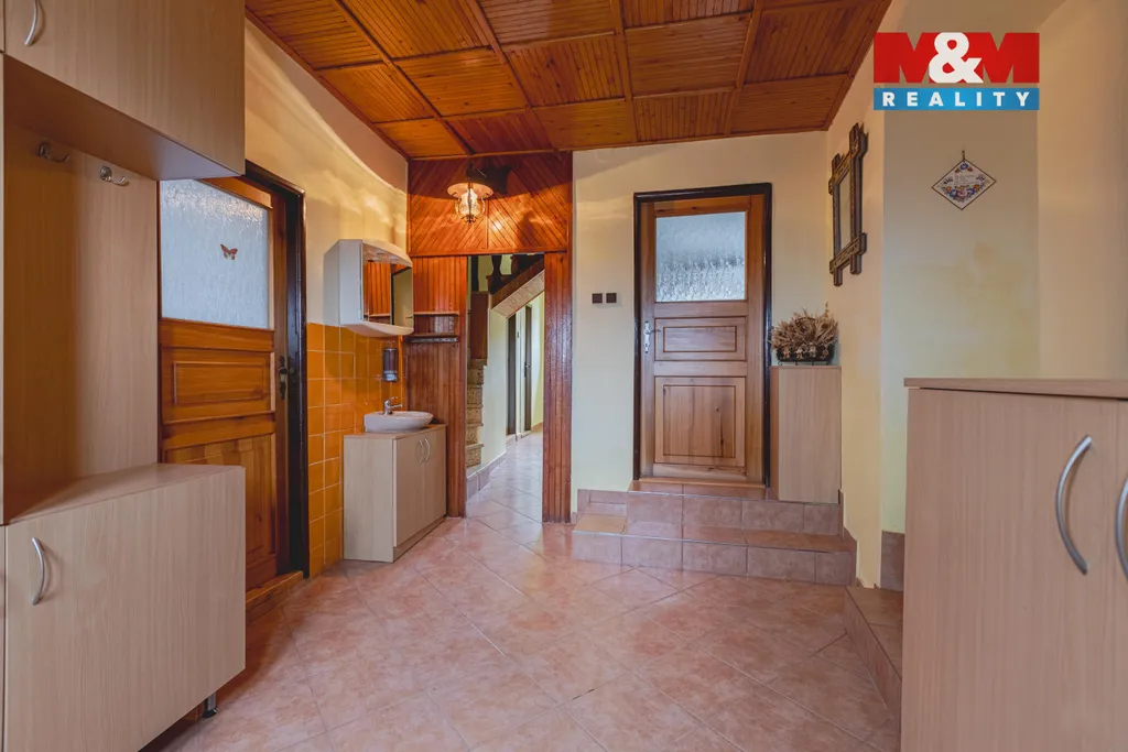 Dispozice domu nabízí dostatek prostoru a soukromí, dominantou je obývací pokoj s krbem, který navozuje příjemnou atmosféru jak pro každodenní bydlení, tak pro víkendový odpočinek. Dům je částečně podsklepený, vytápění je lokální. Napojen na městský vodovod, na pozemku vlastní studna a jímka na odpad.